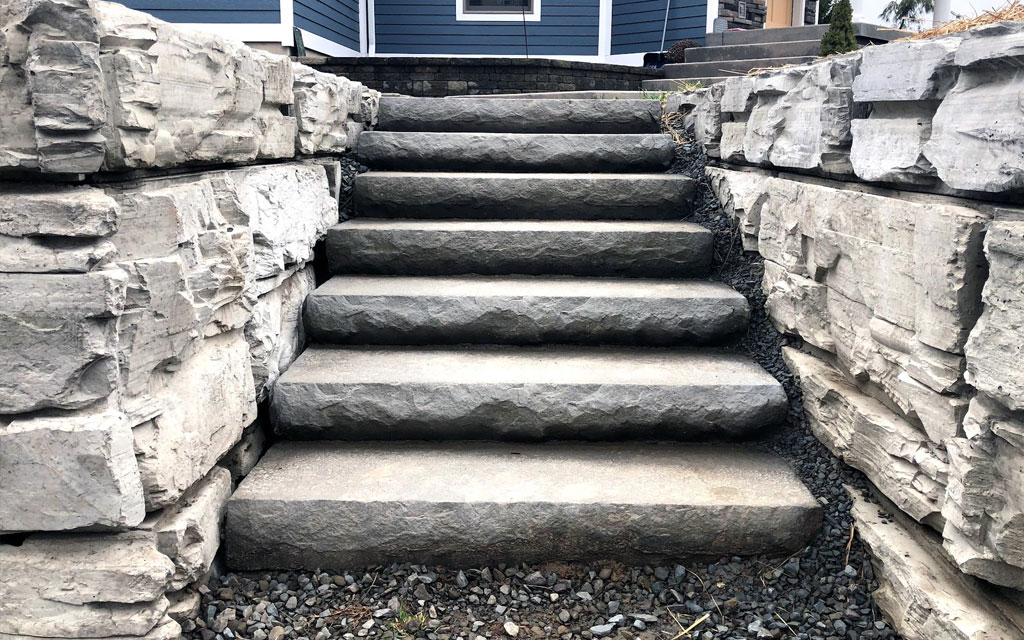 Masters Concrete Products Quarry Treads are one of our most functional and appealing products that we have to offer. Whether they are used as traditional stair treads, stylish wall caps, or even custom bench seating, the MCP Quarry Tread makes and patio or walkway stand out from the rest. Steel reinforced for structural integrity.